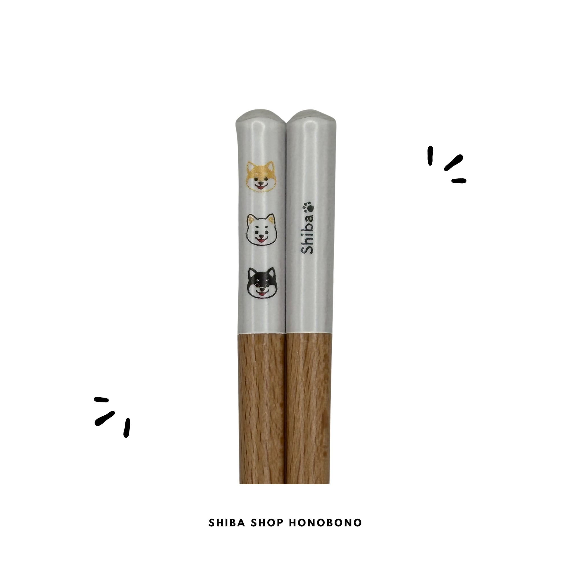 「柴箸 三柴」は、柴犬のイラストがかわいいお箸です。